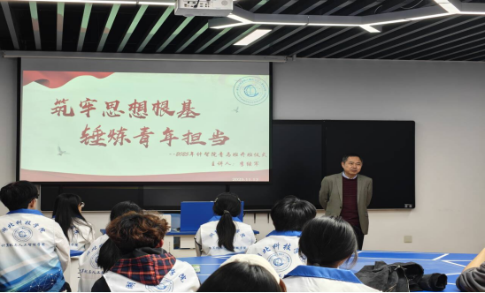 接着,团委书记皮正宇进行第一次授课,青年兴则国家兴,青年强则国家强,青年马克思主义者培养是为党育人、为国育才的关键一环,更是为民族复兴伟业锻造生力军的重要举措。新时代青年学子身处科技变革浪潮与民族复兴征程之中,既是追梦者,更是圆梦人。他向全体学员提出三点希望:一是坚定信仰之心,点亮青春航向。要沉心研读马克思主义原著原文,深刻把握其真理力量与实践力量,深刻领悟“两个确立”的决定性意义,增强“四个意识”、坚定“四个自信”、做到“两个维护”,让听党话、跟党走成为青春最鲜明的底色。二是锤炼实干之能,勇担时代使命。要立足计算机与人工智能学科优势,将理论学习融入科研创新、技术攻关、志愿服务等实践场景,在学科竞赛中锤炼本领,在社会实践中增长才干,把专业所学转化为服务社会的实际行动。三是永葆奋进之姿,书写青春华章。要传承艰苦奋斗的优良传统,拒绝“躺平”、摒弃“佛系”,以敢为人先的锐气、迎难而上的勇气、脚踏实地的底气,在强国建设、民族复兴的赛道上奋勇争先。