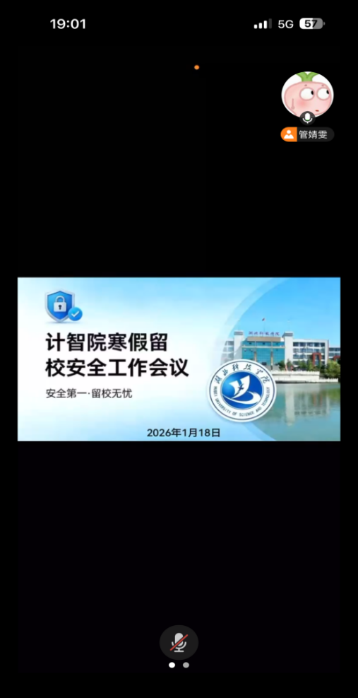 (通讯员:吴俊萱、管婧雯、段思远)为切实保障寒假留校学生安全,强化安全防范意识,1月18日,计算机与人工智能学院召开2026年寒假留校安全工作线上会议。我院学工办辅导员吴俊萱老师主持会议,全体留校学生参会。